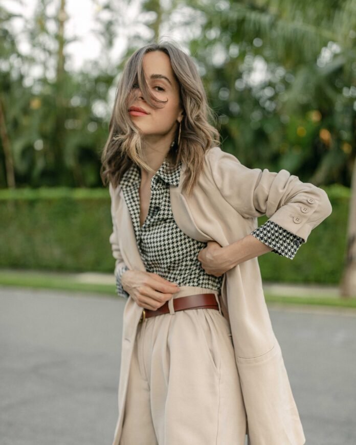 A tan blazer becomes the backbone of countless looks: tossed over a silk blouse for dinner, styled with shorts for a coffee run, layered with denim for a travel day. Gold jewelry transforms from “everyday staple” to “effortless evening.” A classic belt not only refines an outfit but adds that extra touch of intentionality that makes you feel put together.