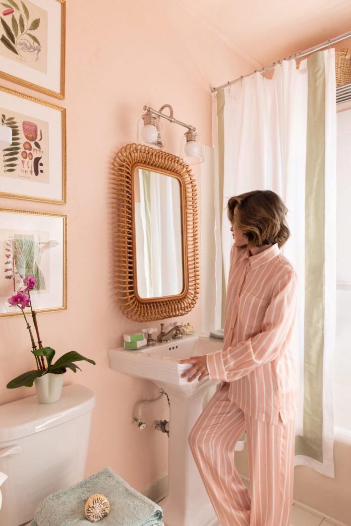 The first step was deciding on a color. My designer, Danielle, suggested a soft pink—a hue that mimics the warm, inviting tones of my kitchen. While white walls can be safe, they can also feel a bit uninspired. This pink, though, is surprisingly versatile and neutral enough to complement a variety of other colors and accessories. It turned out to be the perfect backdrop for my bathroom, giving the room a fresh, calming vibe without being overpowering.